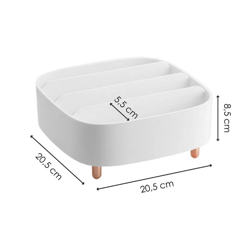 Cutia pentru organizarea machiajului este soluția ideală pentru a păstra ordinea pe masa ta de toaletă. Aceasta este perfectă pentru depozitarea fardurilor, rujurilor și altor produse de machiaj esențiale.