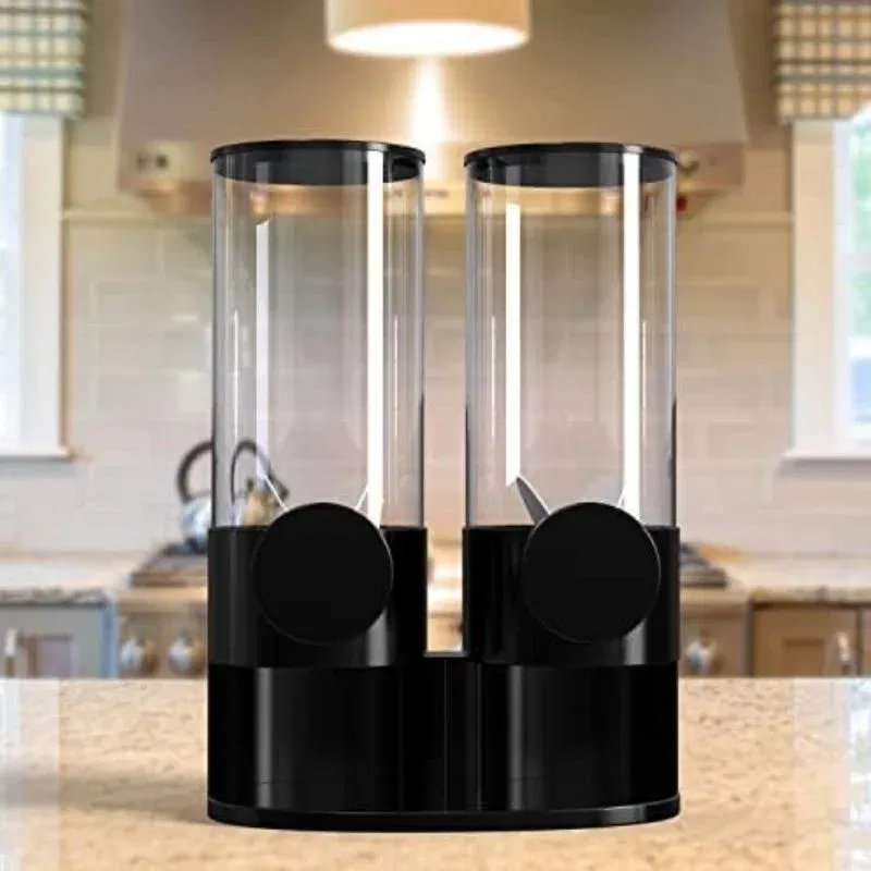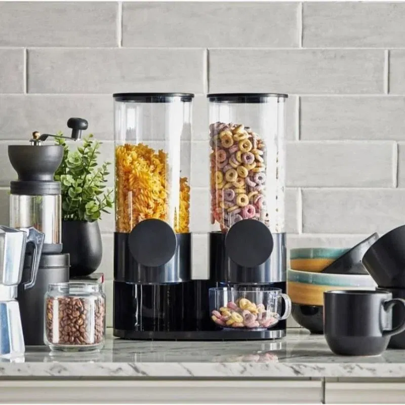 Cerealele tale merita un tratament regal, nu o viata intr-o punga mototolita! Si daca te-ai saturat sa le imprastii pe jumatate de masa la fiecare mic dejun, acest dispenser dublu e salvarea ta de la criza de dimineata.