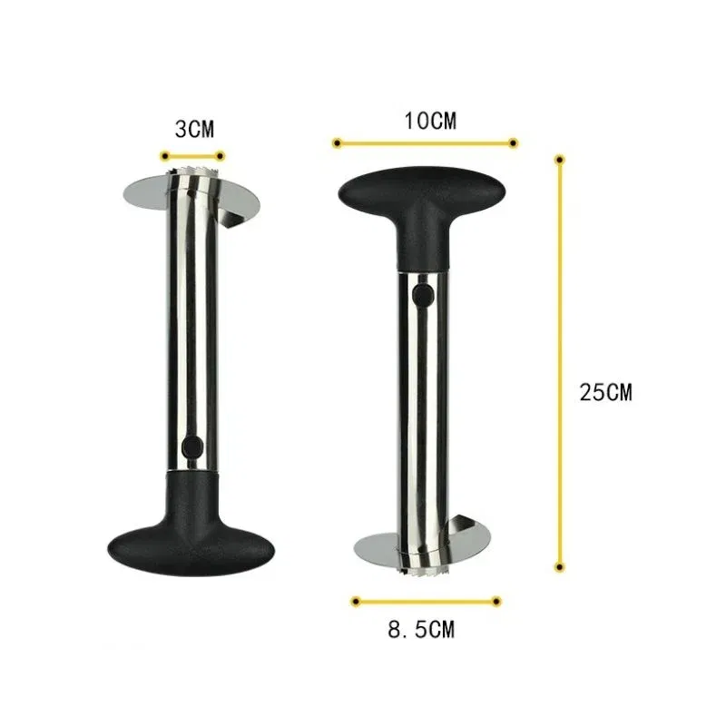 Fabricat din otel inoxidabil durabil si dotat cu un maner ergonomic din plastic, acest gadget scoate miezul ananasului in spirale perfecte, eliminand complet coaja si cotorul dur. Il poti folosi acasa, la picnic sau la petreceri, pentru ca este portabil si usor de curatat. Datorita sistemului sau inteligent de rotatie 360°, procesul devine rapid, uniform si fara efort.