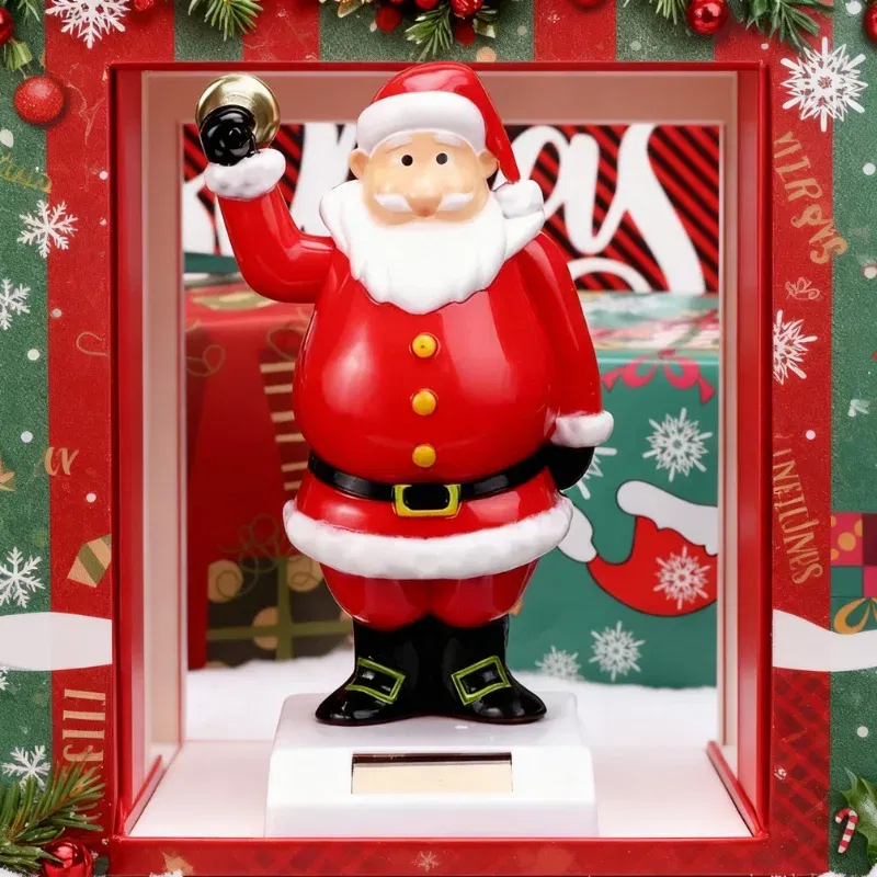 Figurina solara Mos Craciun cu clopotel este accesoriul perfect pentru a aduce spiritul sarbatorilor in orice colt al casei tale. Acest Mos Craciun vesel si jucaus este montat pe o baza din plastic echipata cu o celula solara. Cand este expus la lumina, Mosul prinde viata si incepe sa miste clopotelul cu entuziasm, creand un spectacol simpatic care ii va incanta pe cei mici si pe cei mari deopotriva.