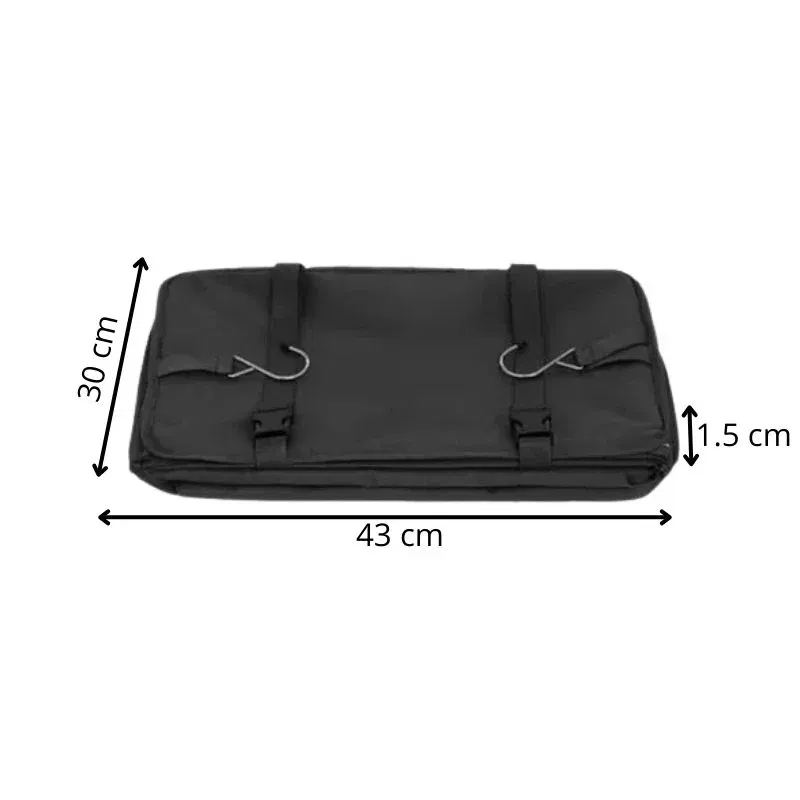 Caracteristici: carlige metalice pentru agatare, maner superior pentru transport, catarame de fixare rapida, sistem de pliere compacta