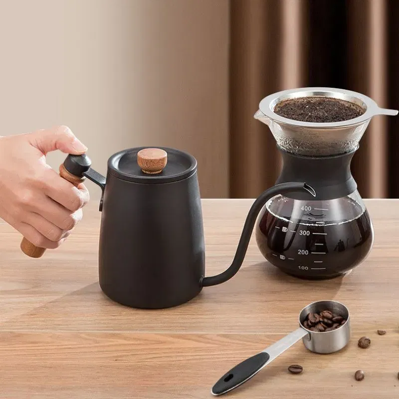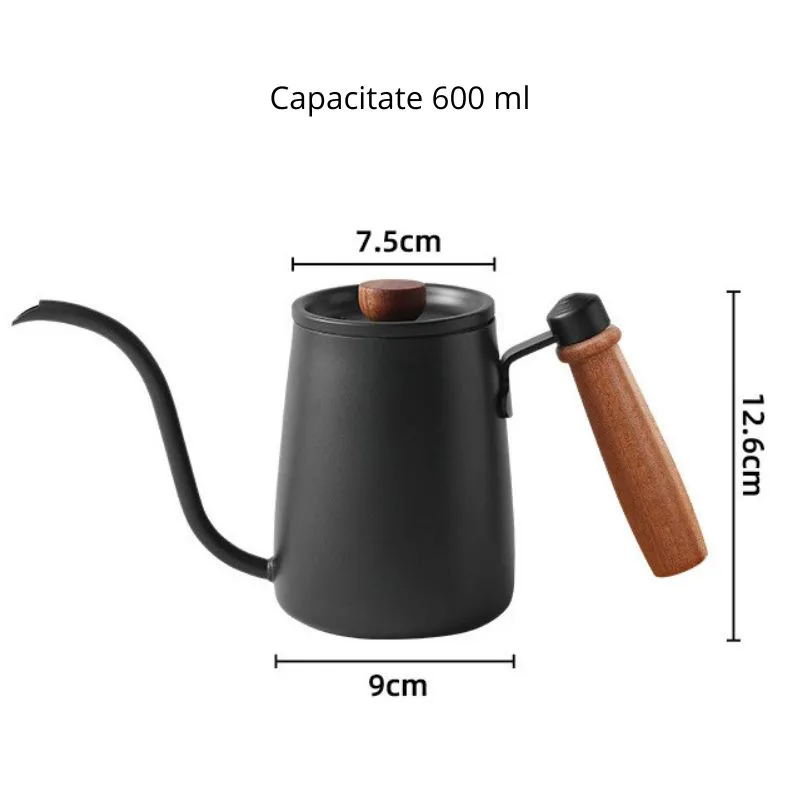 Utilizare: Utilizarea ibricei Perfect Pour este simpla si eficienta. Adaugati apa si cafeaua la temperatura optima, folositi manerul ergonomic pentru control maxim si turnati lent pentru a maximiza extractia. Curatarea este la fel de usoara, recomandandu-se spalarea manuala pentru a pastra finisajul si integritatea manerului din lemn.