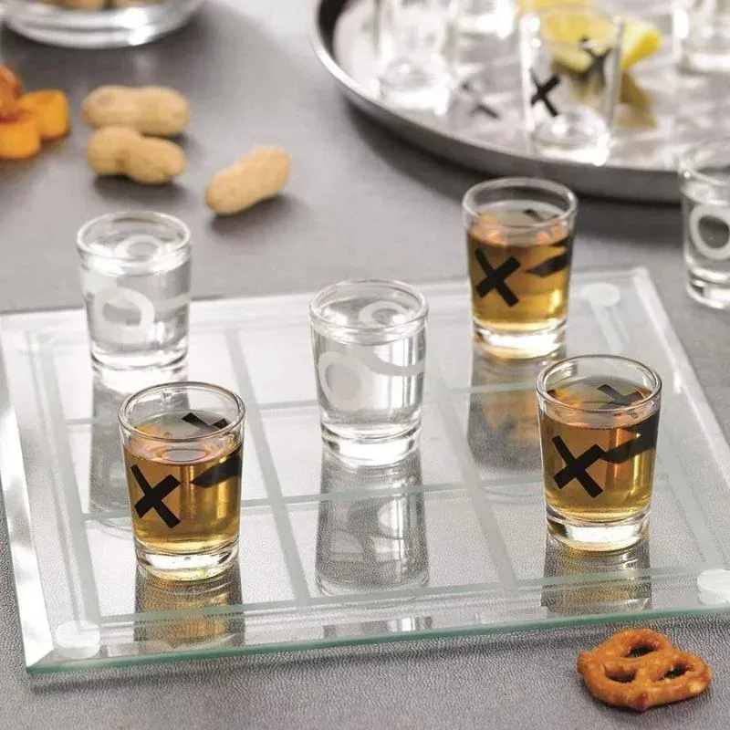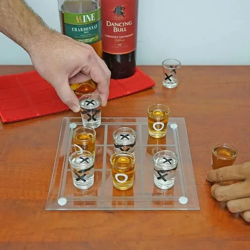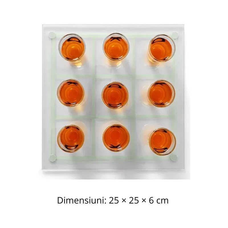 Jocul de baut X si 0 cu shoturi transforma clasicul joc al copilariei intr-o experienta pentru adulti, plina de rasete si suspans. Setul include o tabla de joc din sticla si 9 pahare shot cu simboluri X si O, gata sa fie umplute cu bautura preferata. Este alegerea perfecta pentru petreceri cu prietenii, seri de jocuri sau orice ocazie in care vrei sa combini strategia cu distractia.