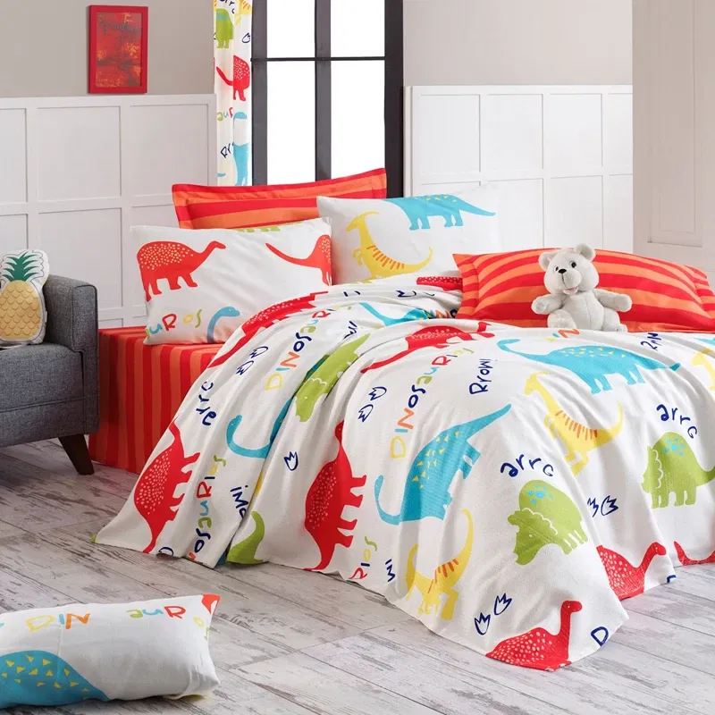 Perfecta pentru camera unui copil pasionat de dinozauri, aceasta lenjerie aduce un plus de veselie si confort in fiecare noapte.