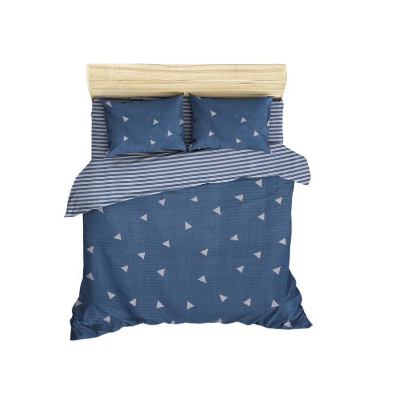 Setul include un cearceaf de pilota de 200x220 cm, un cearceaf plat de 220x240 cm si doua fete de perna de 50x70 cm, oferind o acoperire completa si un aspect uniform patului tau. Inchiderea cu nasturi la pilota si sistemul tip plic pentru fetele de perna asigura un plus de stabilitate si eleganta.