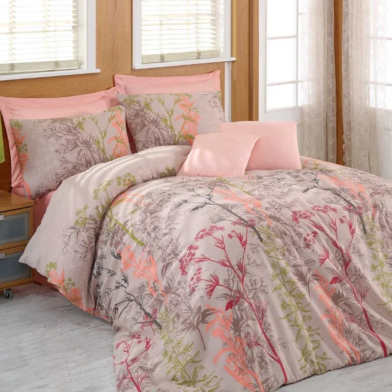 Alege aceasta lenjerie de pat dublu cu model floral pentru a aduce un aer fresh si elegant dormitorului tau. Realizata dintr-un amestec de 65% bumbac si 35% poliester, aceasta lenjerie imbina designul atragator cu confortul suprem.