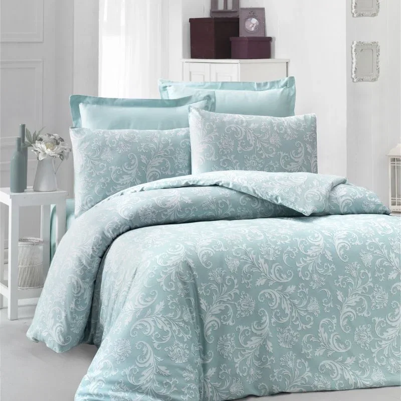 Tesatura are 210 fire/inch, ceea ce ofera un plus de durabilitate si un aspect sofisticat. Inchiderea cu nasturi la pilota si sistemul tip plic la fetele de perna asigura un aspect elegant si o utilizare practica. Aceasta lenjerie poate fi spalata la masina la 40°C, pastrandu-si textura si culorile impecabile in timp. Nu se recomanda utilizarea inalbitorilor.