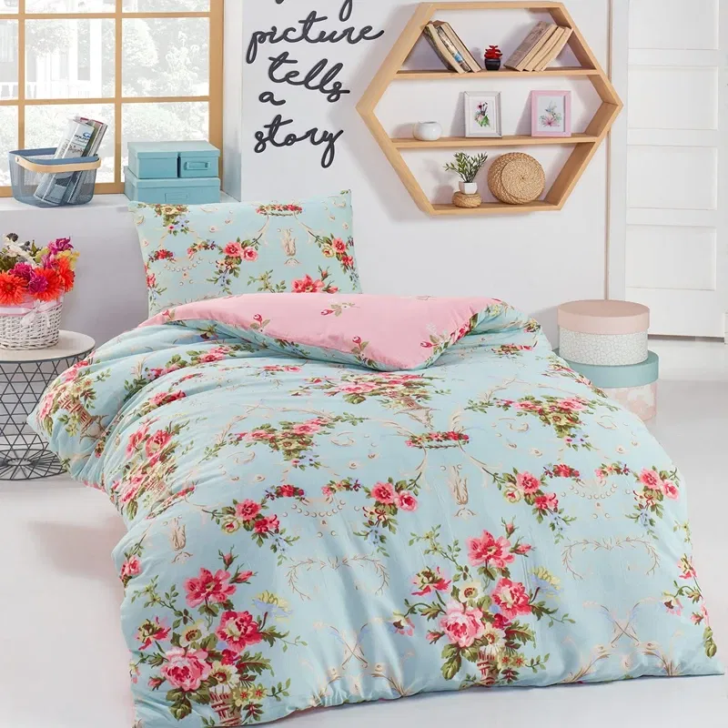Alege aceasta lenjerie de pat single pentru un dormitor modern si elegant. Fabricata dintr-un mix de bumbac si poliester, aceasta lenjerie ofera un echilibru perfect intre confort si rezistenta. Materialul moale si placut la atingere asigura un somn linistit, fiind potrivit pentru orice sezon. Designul rafinat in nuante de turcoaz, roz si rosu adauga un plus de stil si luminozitate camerei tale. Materialul respirabil permite o buna circulatie a aerului, mentinand pielea racoroasa si confortabila in timpul noptii.