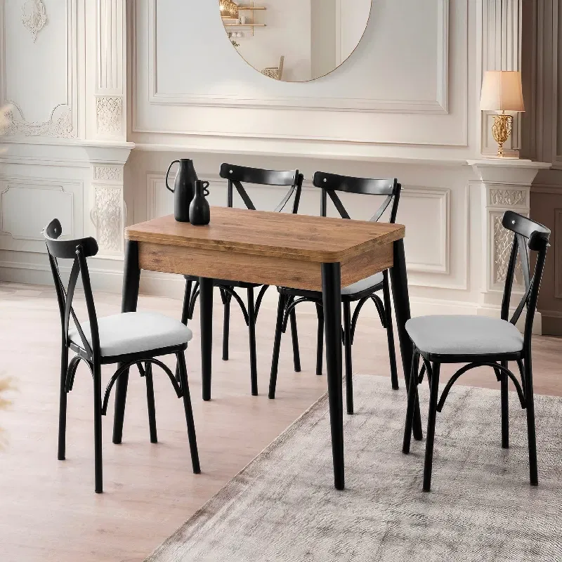Unul dintre principalele avantaje ale acestei mese este mecanismul sau extensibil, care permite marirea suprafetei disponibile atunci cand este necesar. Poti extinde masa rapid si usor, transformand-o intr-o piesa potrivita pentru cinele in familie sau intalnirile cu prietenii. Dimensiunile sale compacte o fac ideala pentru apartamente, iar extensia sa practica iti ofera mai multa flexibilitate in organizarea spatiului.