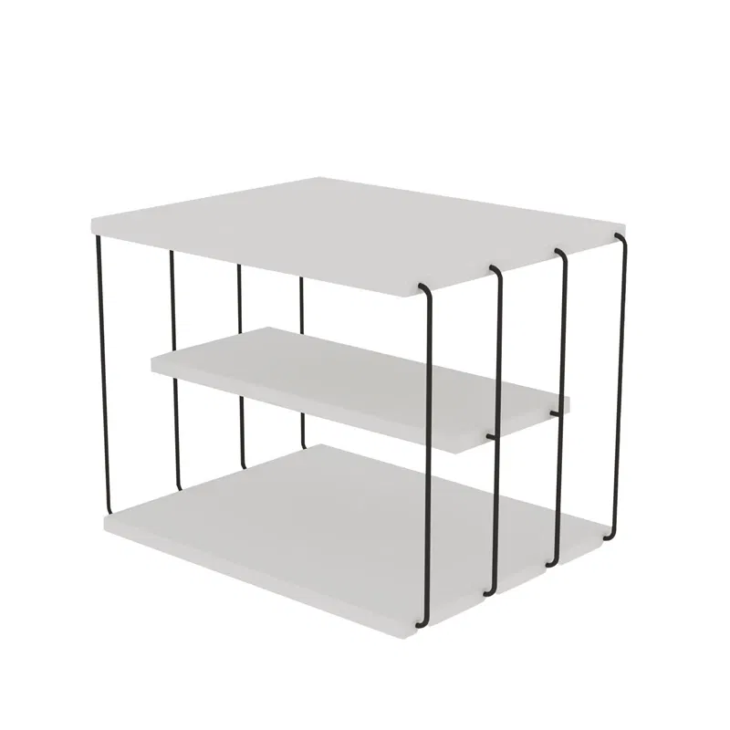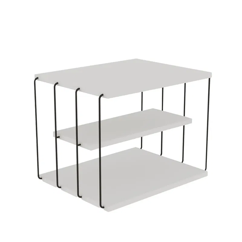 Masuta laterala Lifon alba, negru, este o alegere moderna si practica pentru orice spatiu. Cu un design pe doua niveluri si un cadru metalic rezistent, aceasta masuta este ideala pentru utilizare in living, dormitor sau birou.