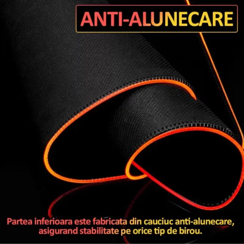 Daca biroul tau pare prea plictisitor, acest mouse pad vine sa-l transforme intr-o scena demna de un campionat eSports! Si nu, nu este doar un simplu mouse pad – este arma secreta a oricarui gamer care vrea precizie, stil si lumini spectaculoase.