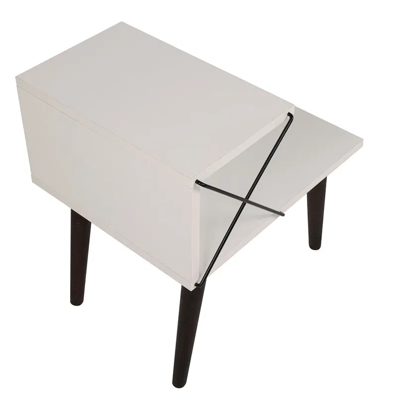 Fabricata din pal melaminat de 18 mm si sustinuta de picioare din lemn de fag, noptiera este stabila si durabila. Finisajul alb mat adauga luminozitate si se integreaza perfect in decoruri moderne sau scandinave.