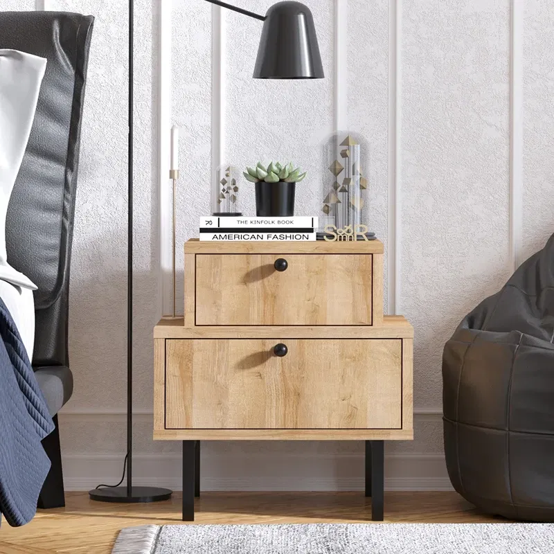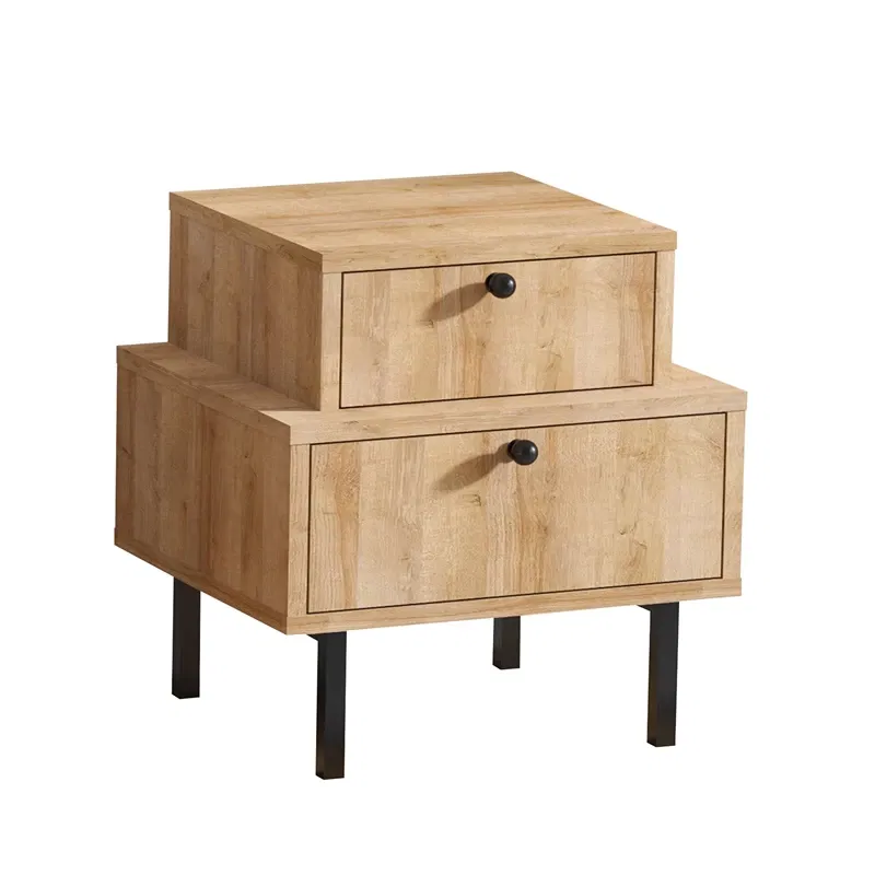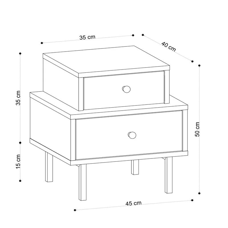 Dimensiunile sale de 45 cm latime si 50 cm inaltime permit integrarea usoara in orice spatiu. Rafturile multiple ofera suficient loc pentru depozitare, iar combinatia de stejar si negru adauga un plus de rafinament. Un mobilier practic si elegant, perfect pentru un dormitor bine organizat si stilat.