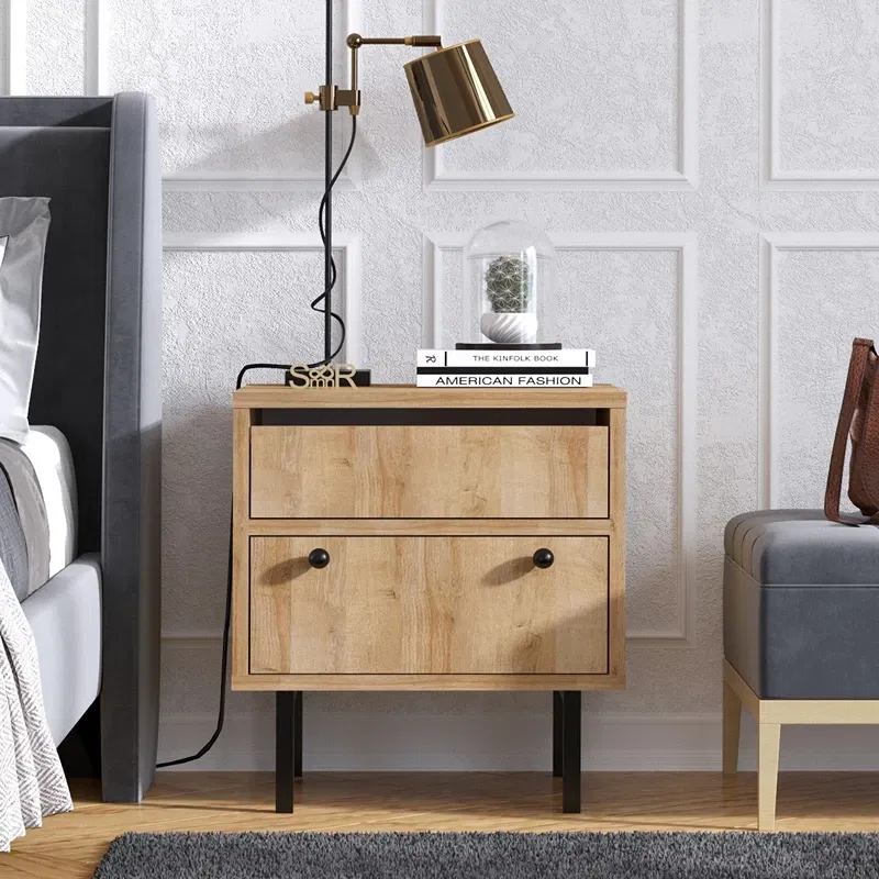 Poate fi utilizata in dormitor ca spatiu de depozitare langa pat, oferind un suport elegant pentru carti, veioza sau obiecte personale. Picioarele metalice confera stabilitate si un aspect modern.