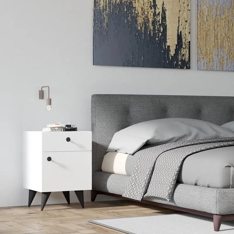 Noptiera Pila, alb, cu sertar si raft, 40x60 cm este o alegere eleganta si functionala pentru orice dormitor. Designul sau modern, cu finisaj alb, se potriveste perfect atat in decorurile minimaliste, cat si in cele clasice.
