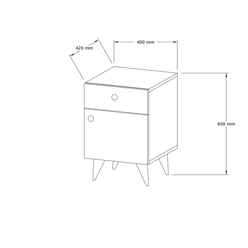 Fabricata din pal melaminat rezistent, aceasta noptiera este dotata cu un sertar spatios si un raft deschis, oferind suficient spatiu pentru depozitarea cartilor, revistelor sau a obiectelor personale. Sertarul gliseaza usor, asigurand acces rapid si confortabil.
