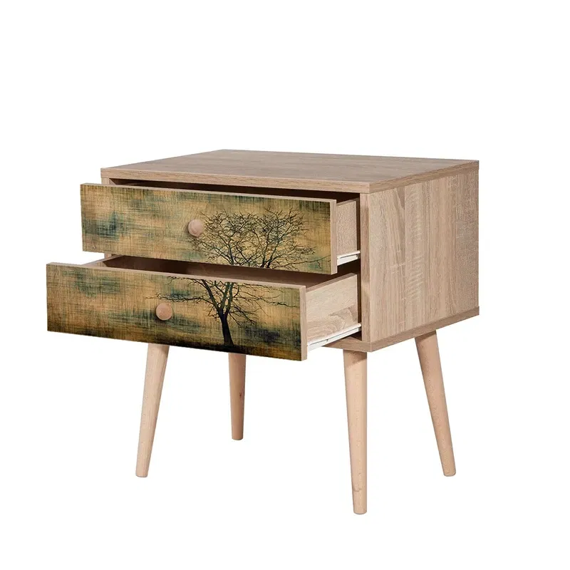 Dispune de doua sertare spatioase, perfecte pentru organizarea cartilor, accesoriilor sau obiectelor personale. Picioarele inalte confera un aspect aerisit si faciliteaza curatarea sub mobilier.