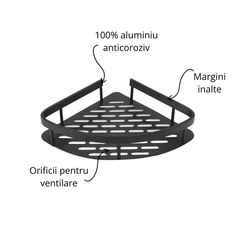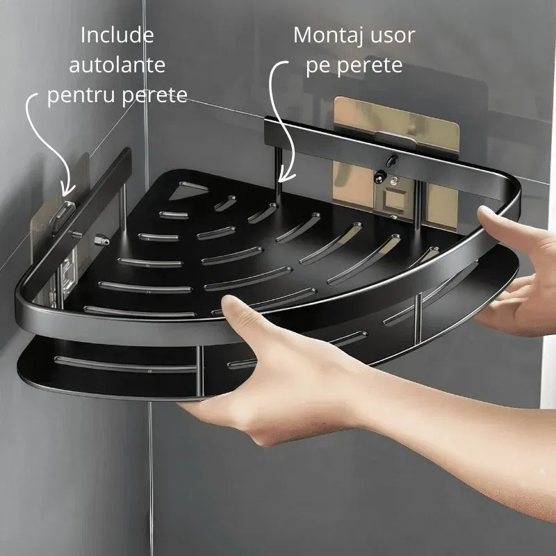 Se lipeste ferm in coltul dorit si devine instant un punct central de depozitare. Ideal pentru produse de igiena, cosmetice, accesorii sau chiar bureti si buretei.