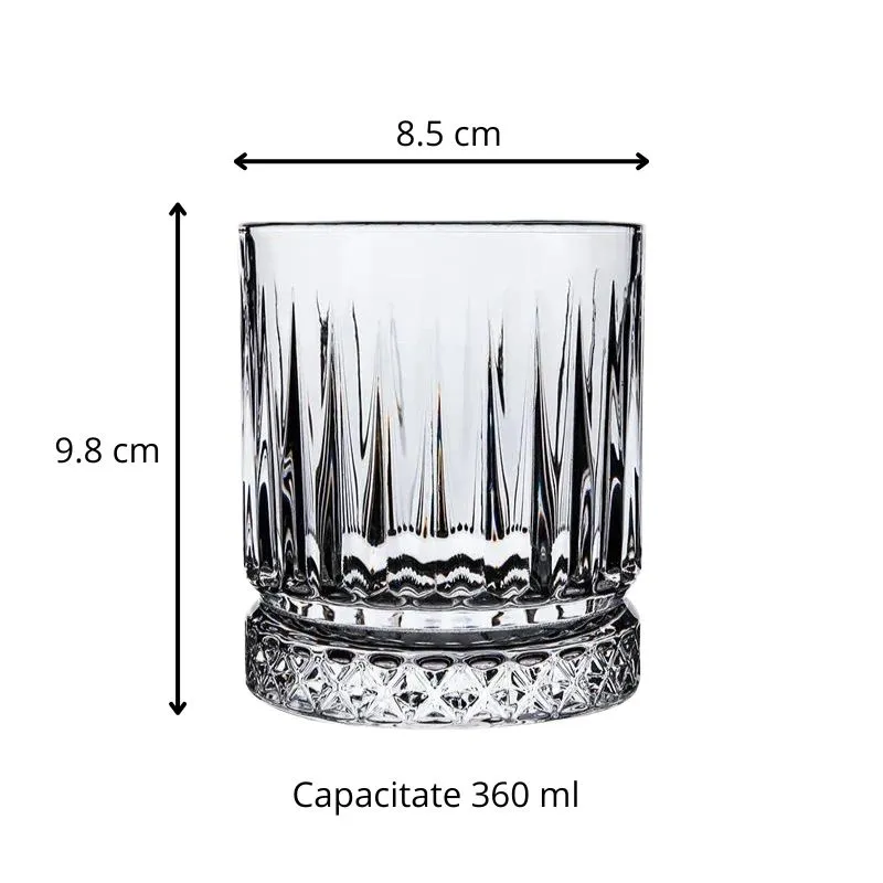 • Capacitate: 360 ml - Capacitatea generoasa de 360 ml permite servirea unor portii ample, ideale pentru degustarea unui whiskey de calitate.