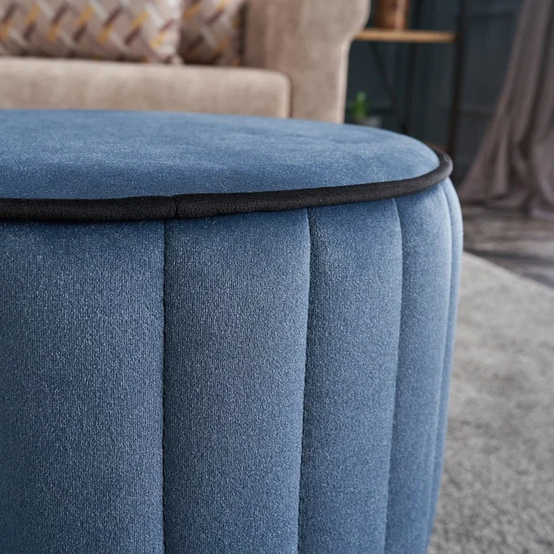 Baza solida din lemn asigura stabilitate, iar tapiteria moale ofera o senzatie placuta la atingere. Designul rotund si compact il face ideal pentru utilizare in living, dormitor sau hol, fie ca suport pentru picioare, loc de sedere suplimentar sau element decorativ.
