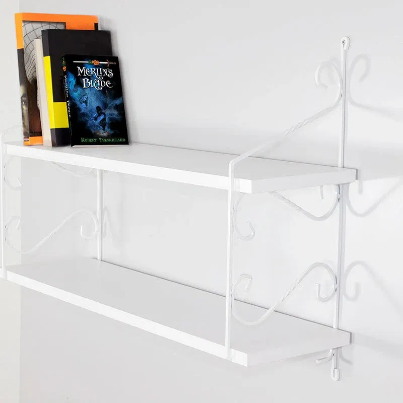 Raftul de perete Seramoni alb lucios este un element decorativ rafinat, ideal pentru cei care doresc un design elegant si practic. Cu un cadru metalic ornamental si un raft alb lucios, acest model se integreaza perfect in interioare minimaliste, vintage sau clasice.