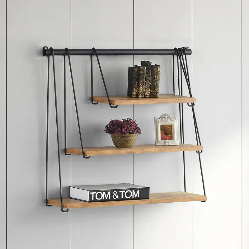 Raftul de perete Zihon Pin este un element decorativ si functional, perfect pentru organizarea cartilor, plantelor si accesoriilor. Cu un design suspendat si polite de dimensiuni variate, acest raft adauga un plus de stil oricarei incaperi.
