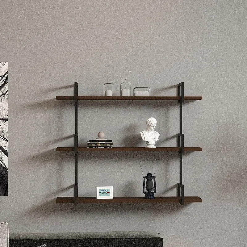 Raftul de perete in culoarea nuc realizat din lemn de pin cu picioare metalice aduce o nota sofisticata si practica oricarei camere din locuinta ta. Combinand aspectul natural si cald al lemnului cu robustetea metalului, acest raft devine piesa de accent ideala pentru spatiile moderne si contemporane.