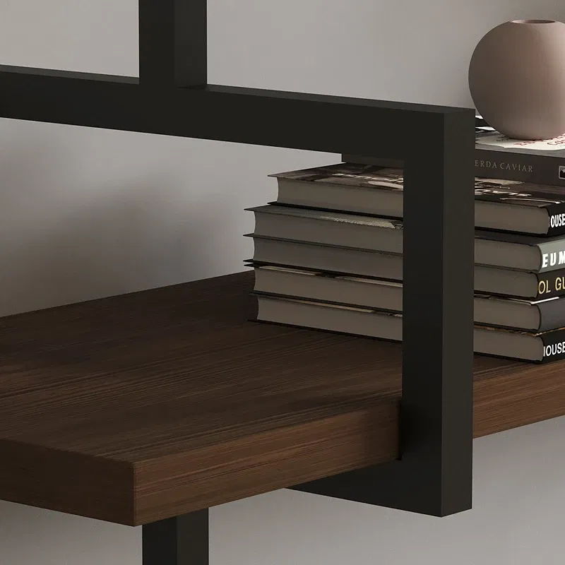 Cu polite multiple, raftul ofera un spatiu generos de depozitare pentru carti, decoratiuni, plante sau alte accesorii preferate, organizandu-ti eficient spatiul. Dimensiunile generoase permit o buna utilizare a spatiului pe verticala, facand ca incaperea sa para mai aerisita si bine organizata.