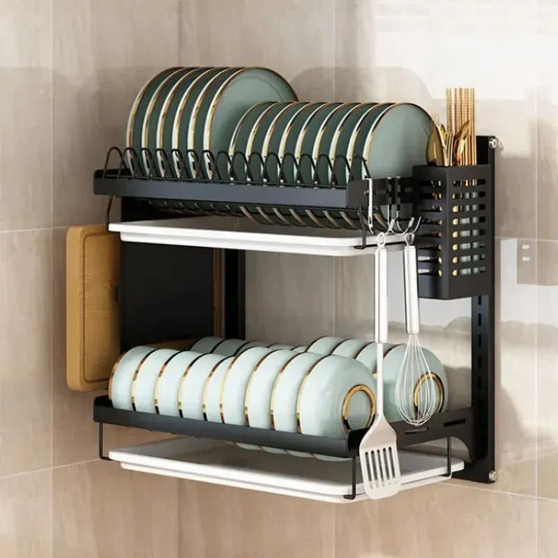 Include tavite de scurgere si suporturi detasabile care pot fi configurate in functie de preferinte. Este usor de montat, iar fixarea pe perete il face extrem de stabil, ideal pentru uz zilnic intens. Practic, frumos si ultra-eficient – o alegere smart pentru bucatariile urbane.
