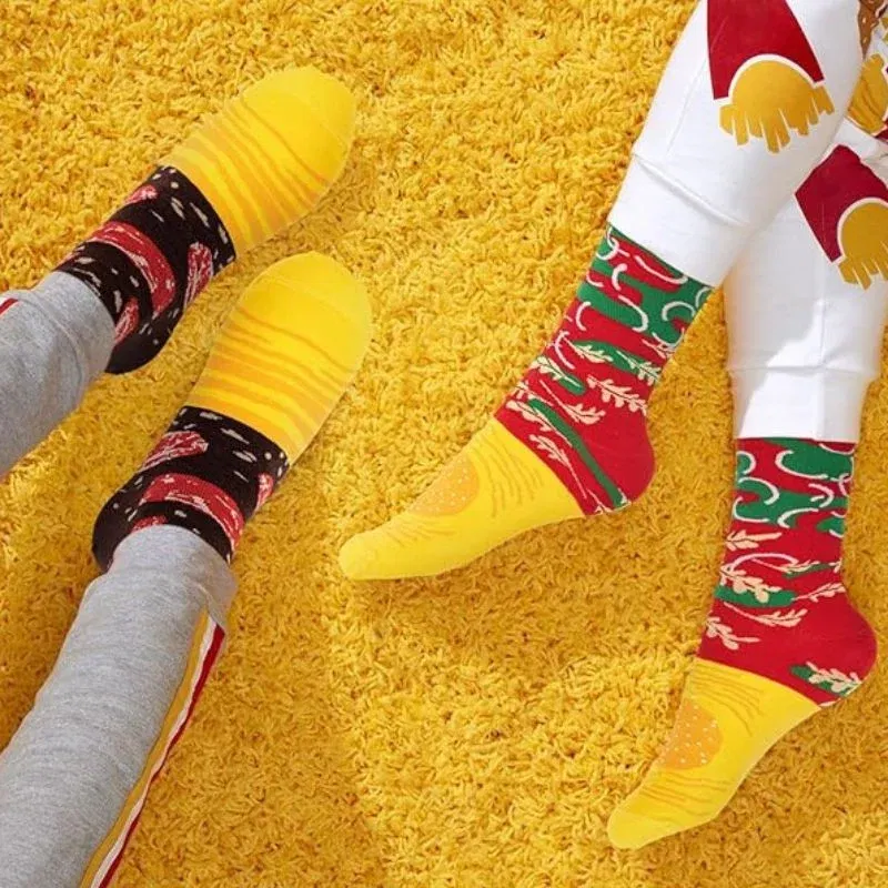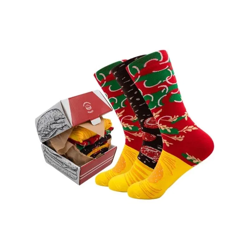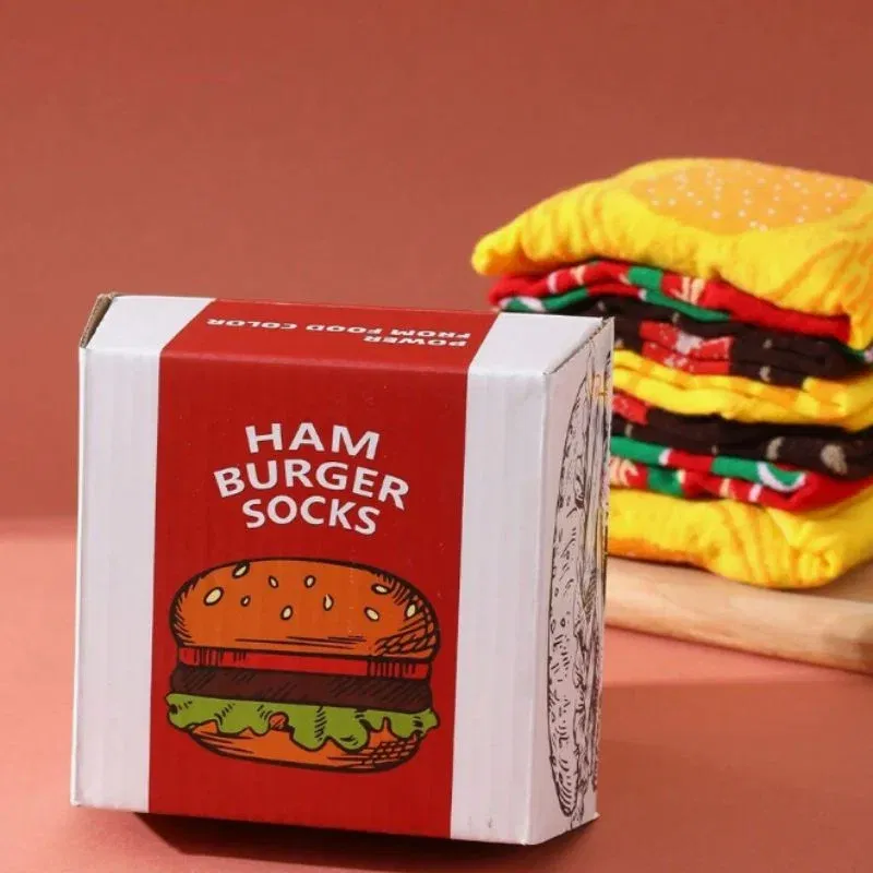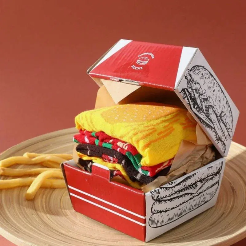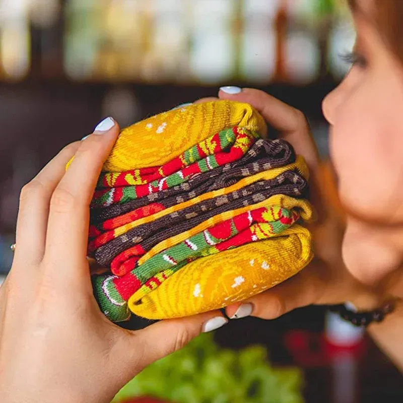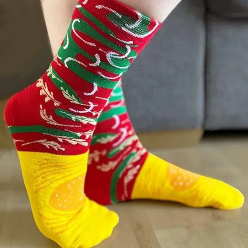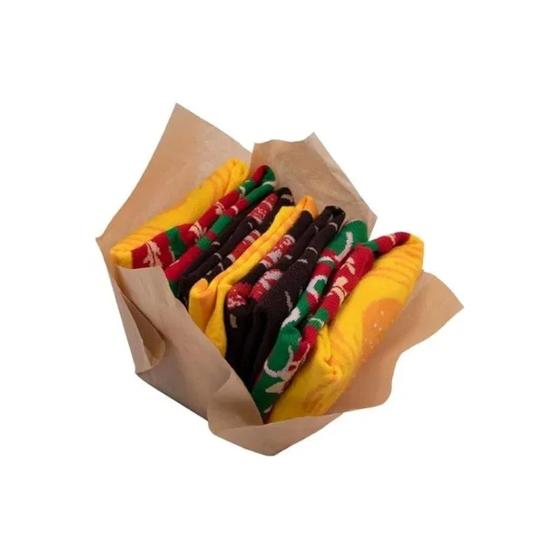 Poarta sosetele amuzante hamburger la tinutele casual pentru a adauga un strop de culoare si distractie. Sunt ideale pentru birou, intalniri intre prieteni, petreceri tematice sau zile in care vrei sa atragi atentia in cel mai haios mod. Datorita materialului respirabil si croiului confortabil, le poti purta ore intregi fara disconfort. Ambalajul sub forma de burger le face excelente pentru a fi oferite ca surpriza inedita oricui iubeste cadourile creative.