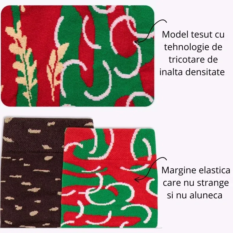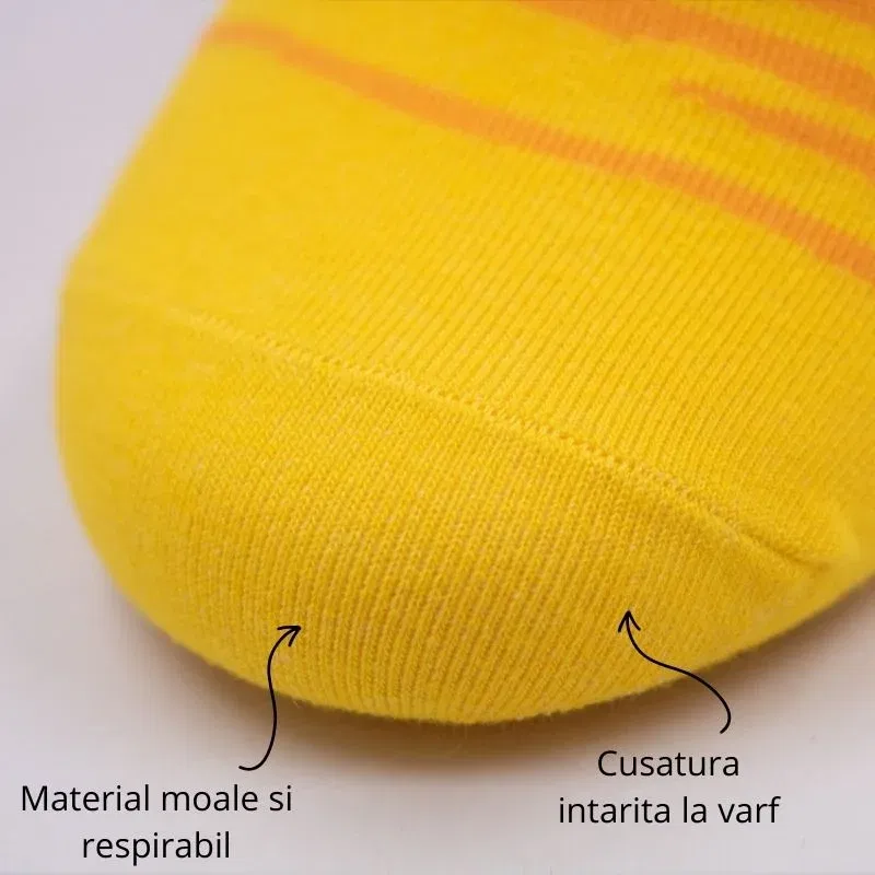 Dimensiunea universala (38-42) asigura o potrivire confortabila pentru majoritatea adultilor, iar materialul rezistent isi pastreaza forma si culorile chiar si dupa spalari repetate. Aceste sosete nu sunt doar un accesoriu, ci o declaratie de stil si buna dispozitie.