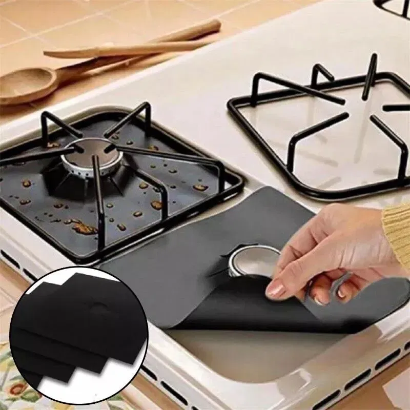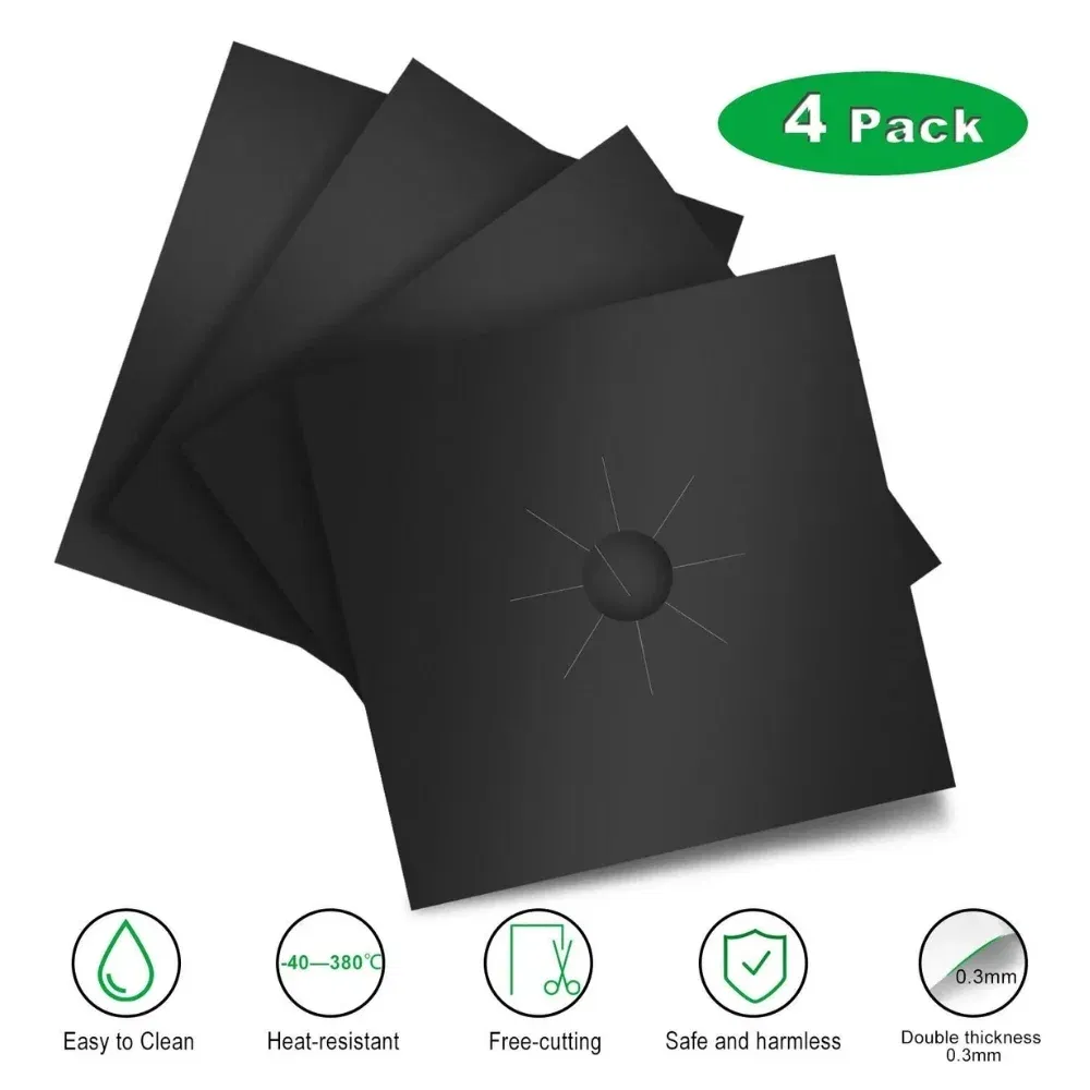 Spune adio curatatului dificil! Cu setul de 4 folii din teflon pentru aragaz, bucataria ta va ramane curata si ordonata fara efort.