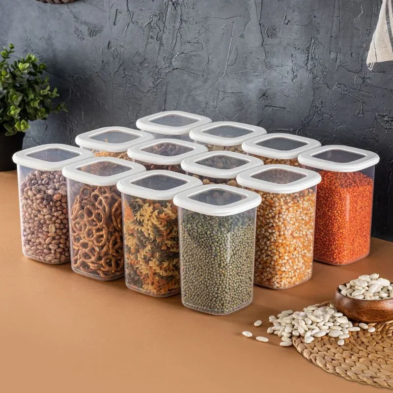 Acest set de 12 cutii de depozitare albe cu capac este soluția ideală pentru organizarea eficientă a alimentelor în bucătărie. Fabricate dintr-un plastic durabil și transparent, aceste cutii permit o vizualizare rapidă a conținutului, economisind timp în identificarea ingredientelor necesare. Capacele albe sigilează perfect, asigurând prospețimea alimentelor și protecția împotriva umezelii și aerului.