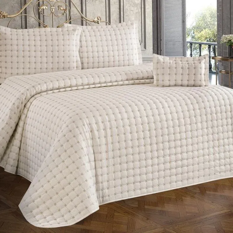 Set cuvertura matlasata din bumbac pentru pat dublu este alegerea perfectă pentru cei care caută un produs de calitate, combinând confortul cu un design elegant. Fabricat din materiale premium, acest produs oferă durabilitate și un aspect sofisticat, fiind ideal pentru orice dormitor modern.