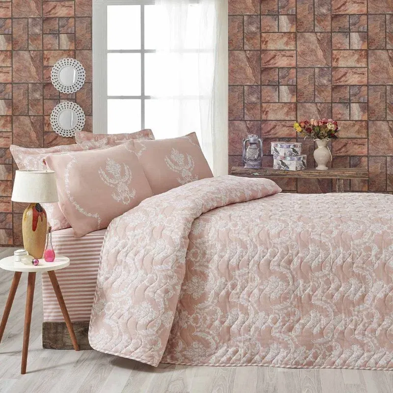 Adauga un plus de eleganta si confort dormitorului tau cu setul de cuvertura pentru pat dublu Pure – Powder White. Confectionat dintr-un mix de 65% bumbac si 35% poliester pentru husa si umplutura din 100% fibra, acest set combina stilul rafinat cu functionalitatea. Cuvertura matlasata este ideala pentru a aduce un plus de caldura si un aspect sofisticat patului tau.
