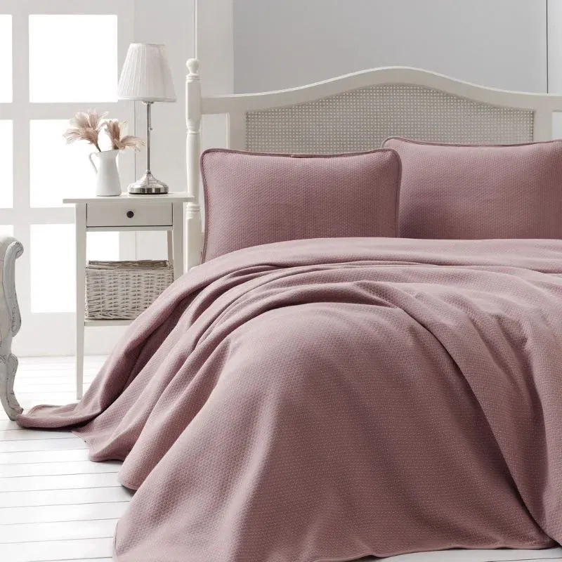 Cuvertura Liv - Roz prafuit este ideala pentru a proteja si infrumuseta patul, oferind un plus de confort si stil. Poate fi folosita zilnic pentru a mentine un aspect ordonat si sofisticat al dormitorului, dar si ca strat superior in timpul noptii pentru un somn relaxant.