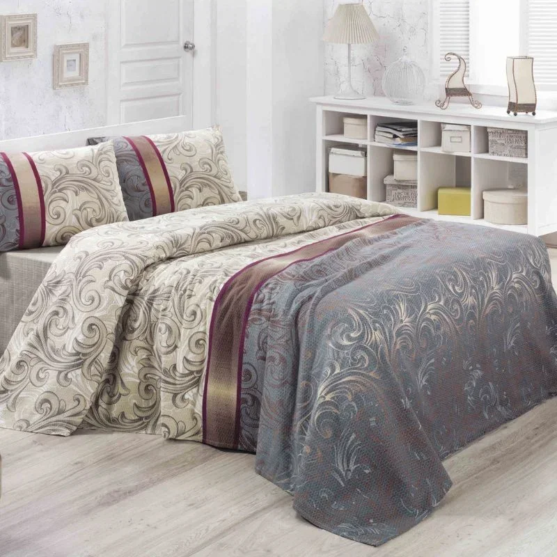 Ofera dormitorului tau un aer sofisticat si confortabil cu setul de cuvertura piqué Hürrem. Realizata din 100% bumbac, aceasta cuvertura este perfecta pentru cei care apreciaza materialele de calitate si designul elegant. Datorita tesaturii piqué, aceasta cuvertura are o textura distinctiva si o greutate ideala pentru a fi folosita atat in sezonul cald, cat si in cel rece.
