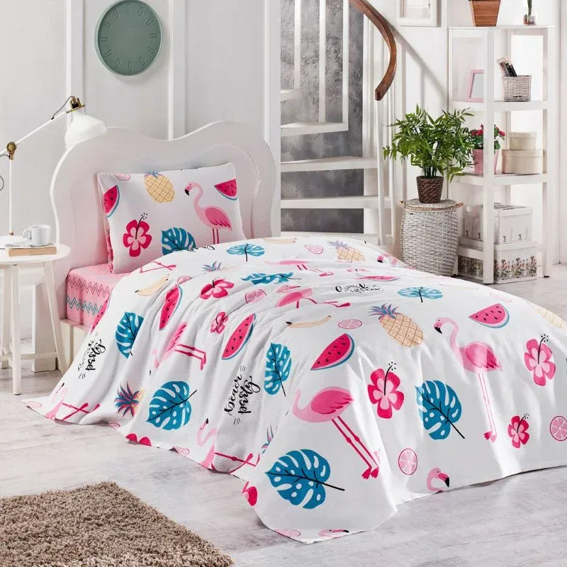 Setul de cuvertura Kokteyl este ideal pentru a mentine un aspect ingrijit si vesel al patului. Poate fi folosit atat ca strat decorativ, cat si pentru un plus de caldura in timpul noptii.