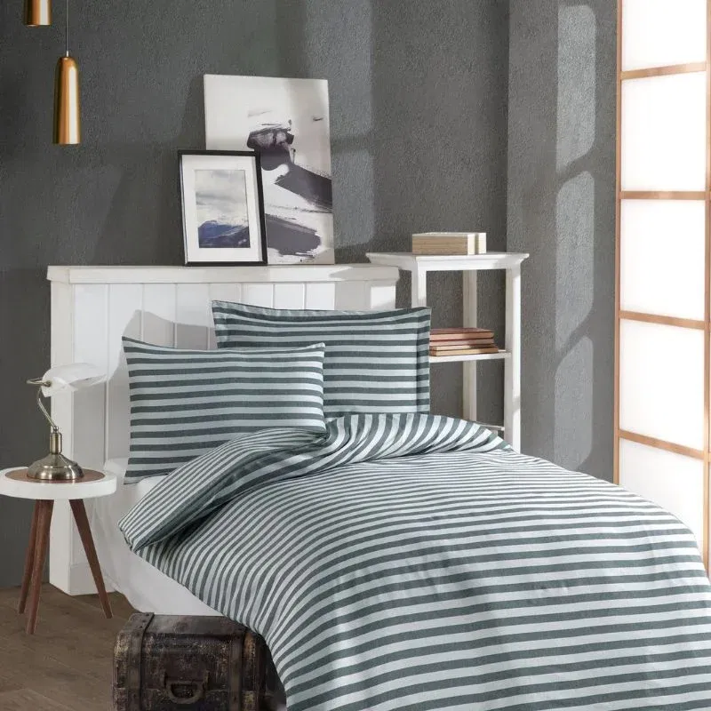 Set lenjerie pat dublu, imprimeu sofisticat cu dungi gri și alb este alegerea perfectă pentru cei care caută un produs de calitate superioară, combinând confortul și stilul într-un singur set. Fabricat din materiale premium, acest set de lenjerie de pat asigură un somn odihnitor și o senzație de prospețime la fiecare utilizare.