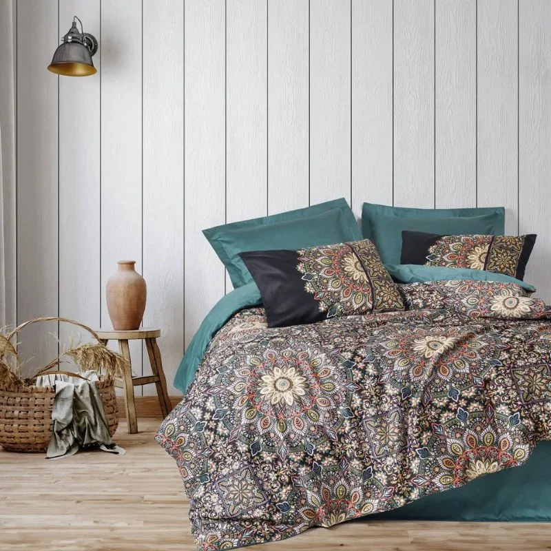 Setul de lenjerie pat dublu Ornate - Petrol, bumbac satinat, 200x220 cm este alegerea ideala pentru un dormitor elegant si sofisticat. Fabricat din bumbac satinat de inalta calitate, acest set de lenjerie ofera o senzatie matasoasa la atingere si un confort optim in timpul somnului.