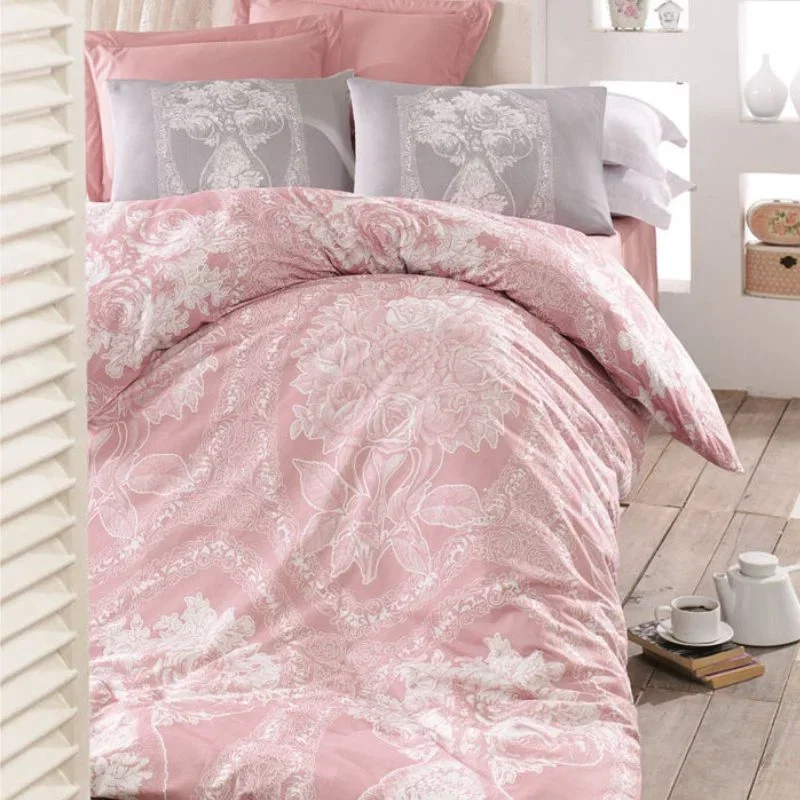 Nuanta delicata de roz pastel adauga un aer romantic si relaxant camerei, creand o atmosfera primitoare. Materialul de calitate superioara permite o buna circulatie a aerului si ofera un somn confortabil in orice anotimp.