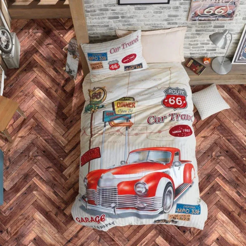 Cu o tesatura de 110 g/mp si tehnologie de imprimare pigmentata, acest set isi pastreaza culorile vibrante si textura delicata chiar si dupa multiple spalari. Setul include o husa de pilota, un cearsaf de pat si o fata de perna, toate avand finisaje de calitate si un sistem de inchidere sigur si practic.
