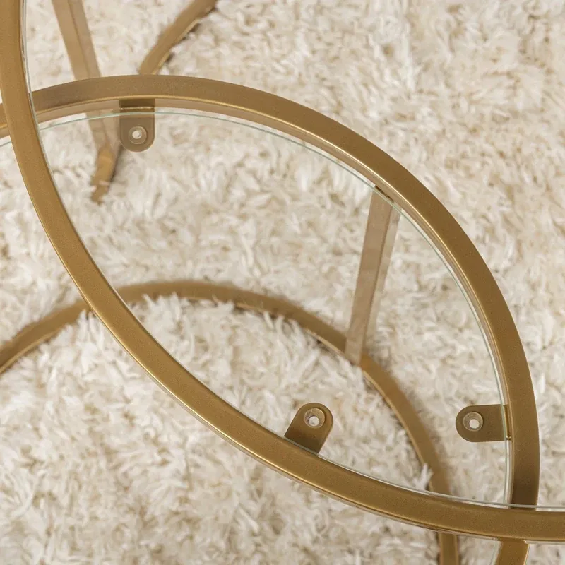 Setul de masute de cafea auriu-Transparent poate fi folosit pentru servirea bauturilor, expunerea decoratiunilor sau ca suport pentru reviste si accesorii. Este perfect pentru livinguri elegante si spatii de relaxare moderne.