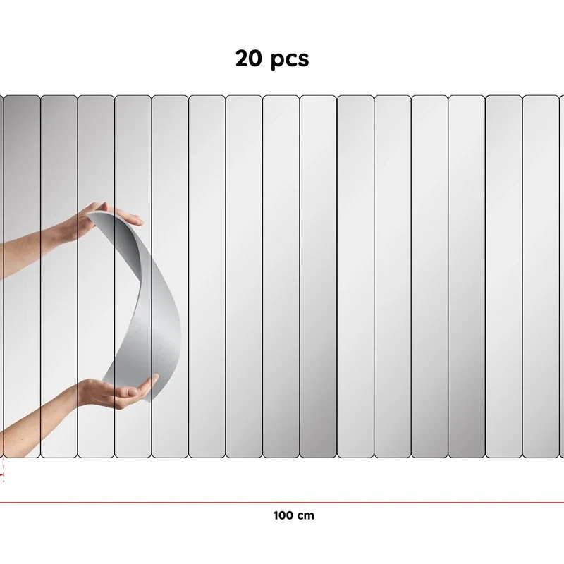 Dimensiunile fiecarui element sunt de 5 x 40 cm, iar setul contine 20 de bucati, permitand personalizarea decorului in functie de preferinte. Finisajul argintiu se potriveste perfect in orice stil de amenajare. Un set elegant si practic, ideal pentru un decor modern si sofisticat.