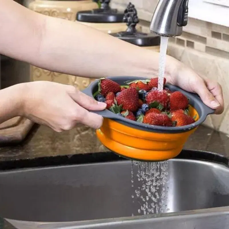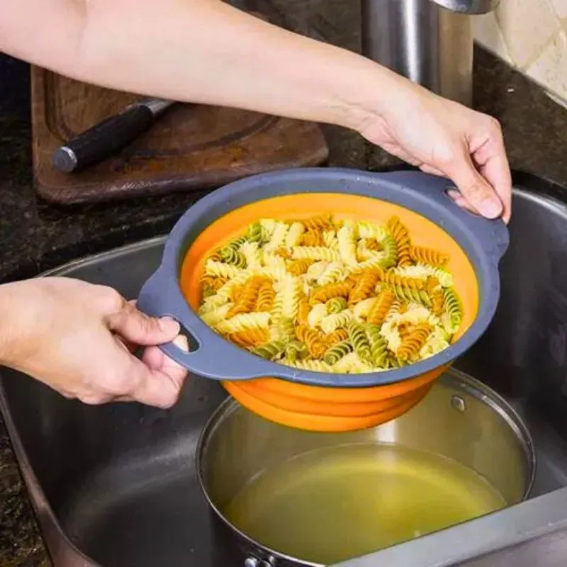 Utilizare: Strecuratoarea pliabila din silicon este extrem de usor de utilizat. Desfa strecuratoarea si foloseste-o pentru a scurge apa din paste, legume sau fructe. Dupa utilizare, spala-o usor si pliaza-o pentru a economisi spatiu in dulapul tau de bucatarie. Este potrivita pentru utilizarea zilnica si pentru excursii in aer liber.