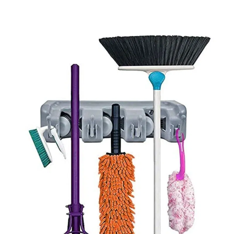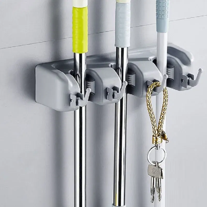 Organizeaza inteligent mopurile, maturile si alte unelte de curatenie cu acest suport cu montare pe perete. Fabricat din materiale durabile, rezistente la umezeala si uzura, acest suport este o solutie practica si moderna pentru orice casa. Suportul este prevazut cu cleme reglabile si carlige suplimentare, oferind spatiu de depozitare pentru mai multe obiecte simultan.