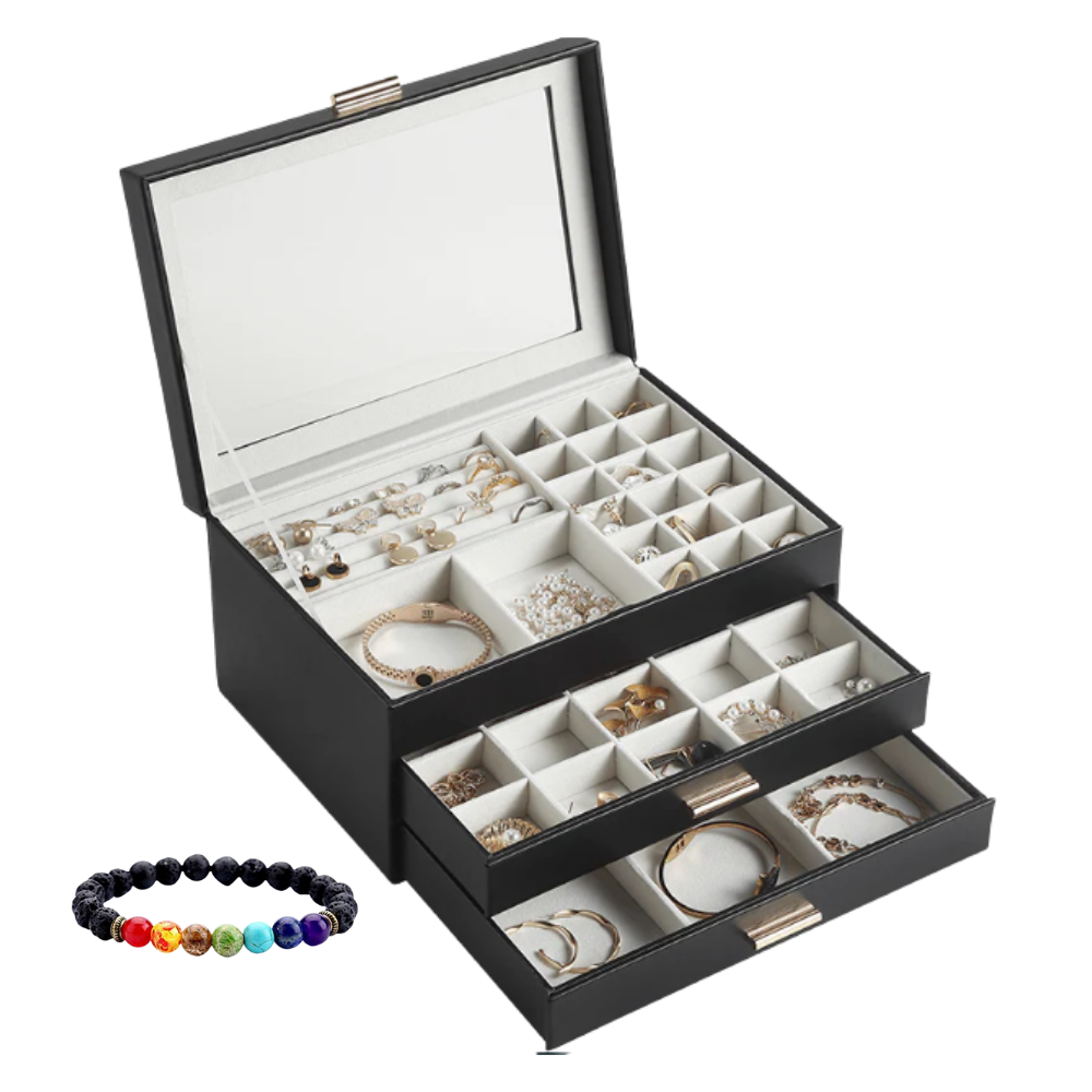 Prevazuta cu varii compartimente, cutia permite pastrarea intr-un mod ordonat a colierelor, cerceilor si inelelor. Nimic nu este mai placut decat sa gasesti ceea ce iti doresti, in doar cateva clipe, fara a mai intarzia la evenimentele cele mai importante din viata ta. Bijuteriile au si o valoare materiala importanta, ceea ce inseamna ca necesita un plus de atentie. Nu le poti depozita in orice loc, asta daca vrei sa isi pastreze intact aspectul.