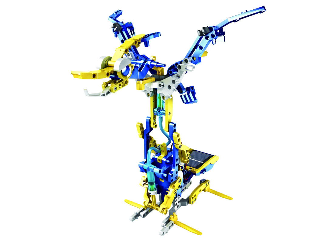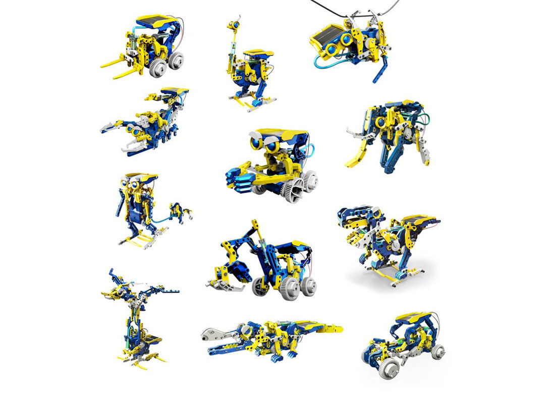 Utilizare: Pachetul contine 212 piese din care se pot construi 12 roboti diferiti (unii sunt animale, altii diferite vehicule). Asamblarea fiecaruia se face consultand instructiunile din pachet, iar de indata ce robotul este gata acesta va avea miscari diferite, in functie de modelul ales. Se incarca cu energie solara.