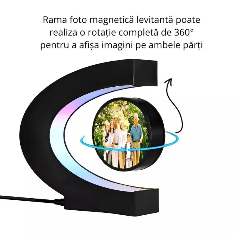Lumina Led colorata este incorporate in suportul acestuia si este mai vizibila in locurile intunecate. Rama magnetica plutitoare reprezinta un gadget spectaculos care atrage privirile tuturor.