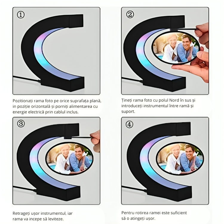 • rama foto levitanta nu include personalizare. Va rugam sa adaugati propriile poze.